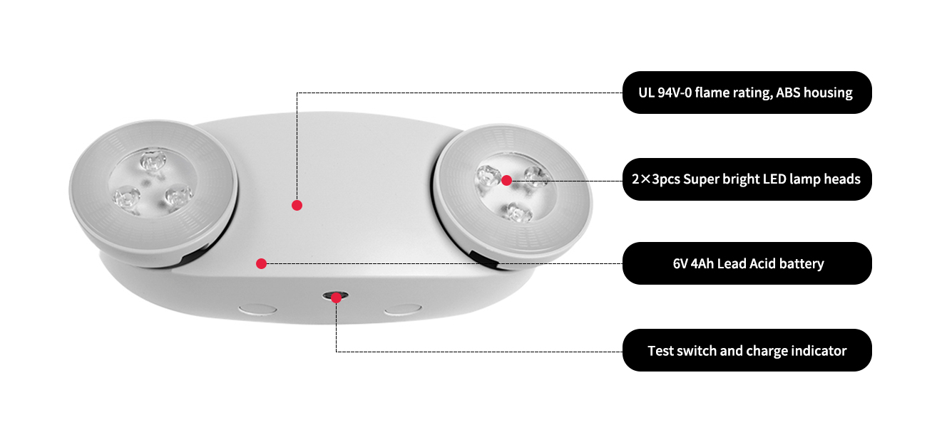 デュアルヘッドの緊急灯 *注入モーレード熱可塑性ABSハウジング、UL 94V-0火炎評価 *数分で革新的で簡単なインストール *ウォールマウントアプリケーションに適しています *ユニバーサルJ-Bo...