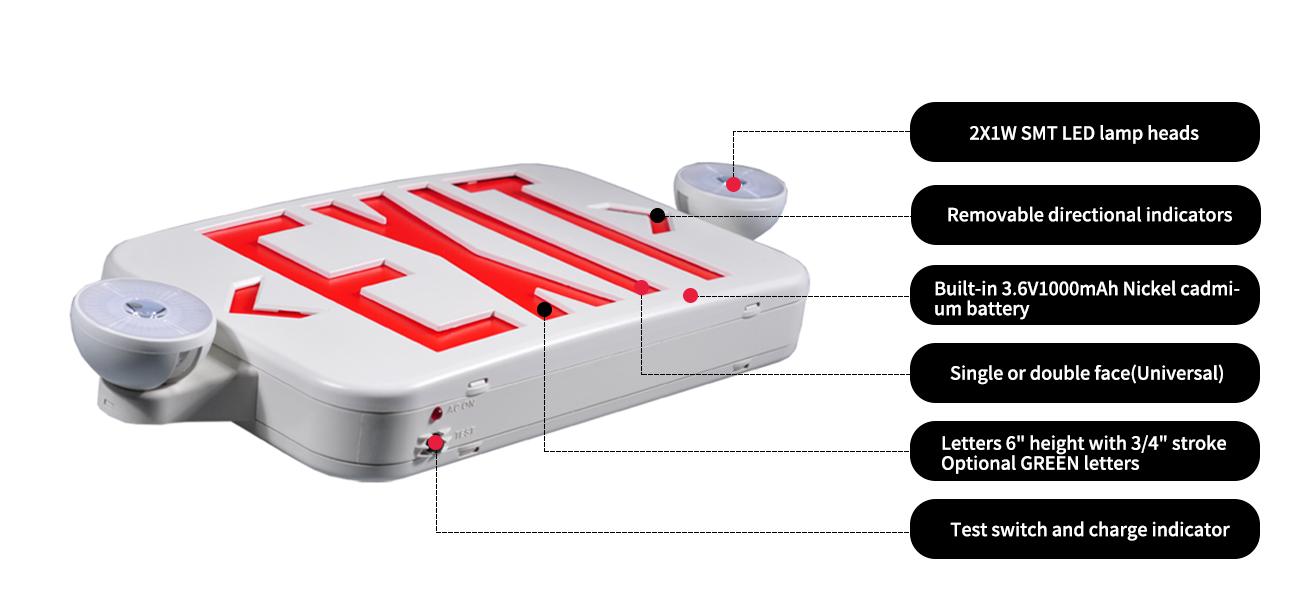 2019 New LEDコンボ緊急出口標識LEDヘッド(赤い文字) *噴射型熱可塑性腹筋ハウジング、UL 94V-0火炎評価。 *数分で革新的で簡単なインストール *文字6 "...