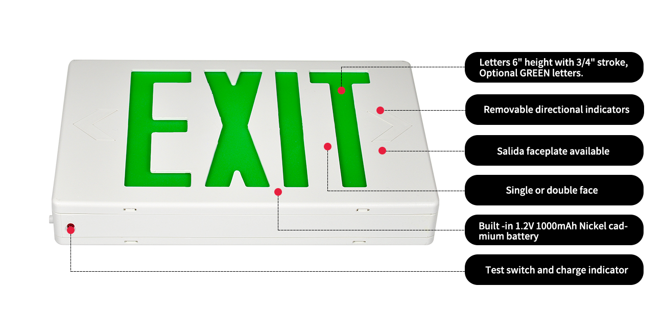 LEDコンボ緊急出口サインLEDヘッド(緑色の文字) *噴射型熱可塑性腹筋ハウジング、UL 94V-0火炎評価。 *数分で革新的で簡単なインストール *文字6 "高さ3/4"ス...
