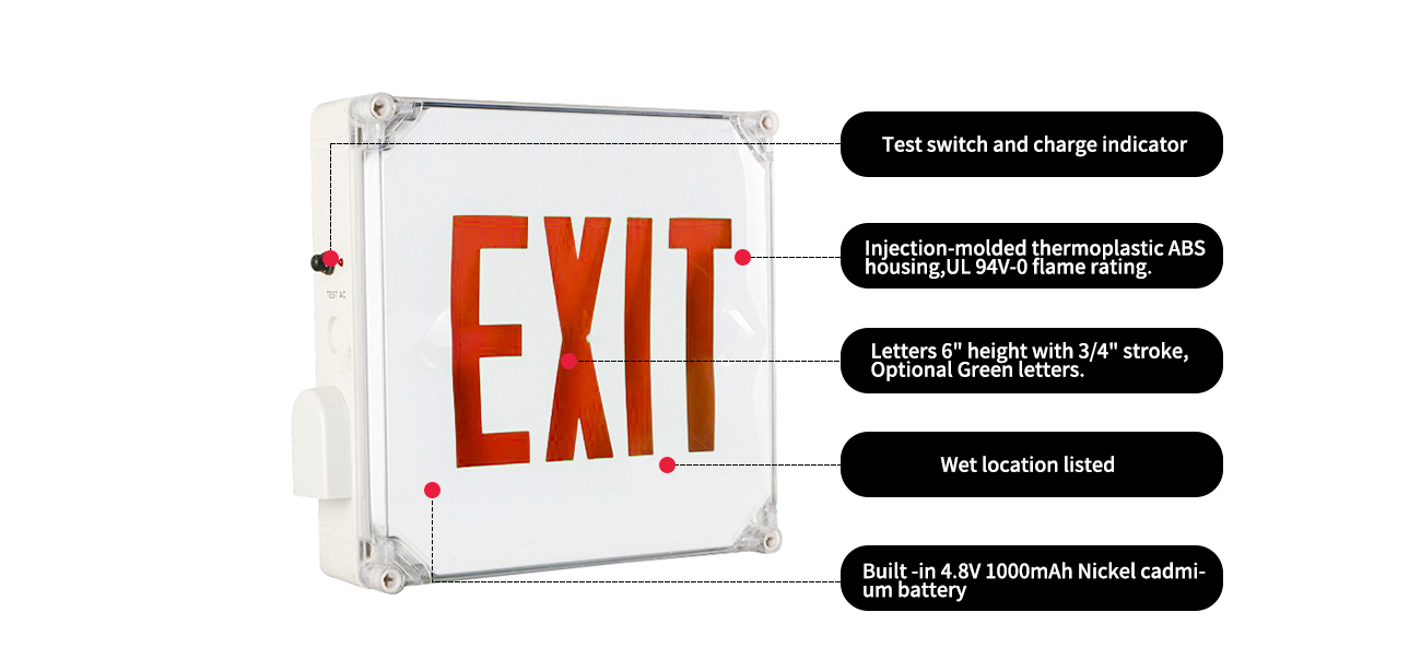 2019 New LEDコンボ緊急出口標識LEDヘッド(赤い文字) *噴射型熱可塑性腹筋ハウジング、UL 94V-0火炎評価。 *数分で革新的で簡単なインストール *文字6 "...
