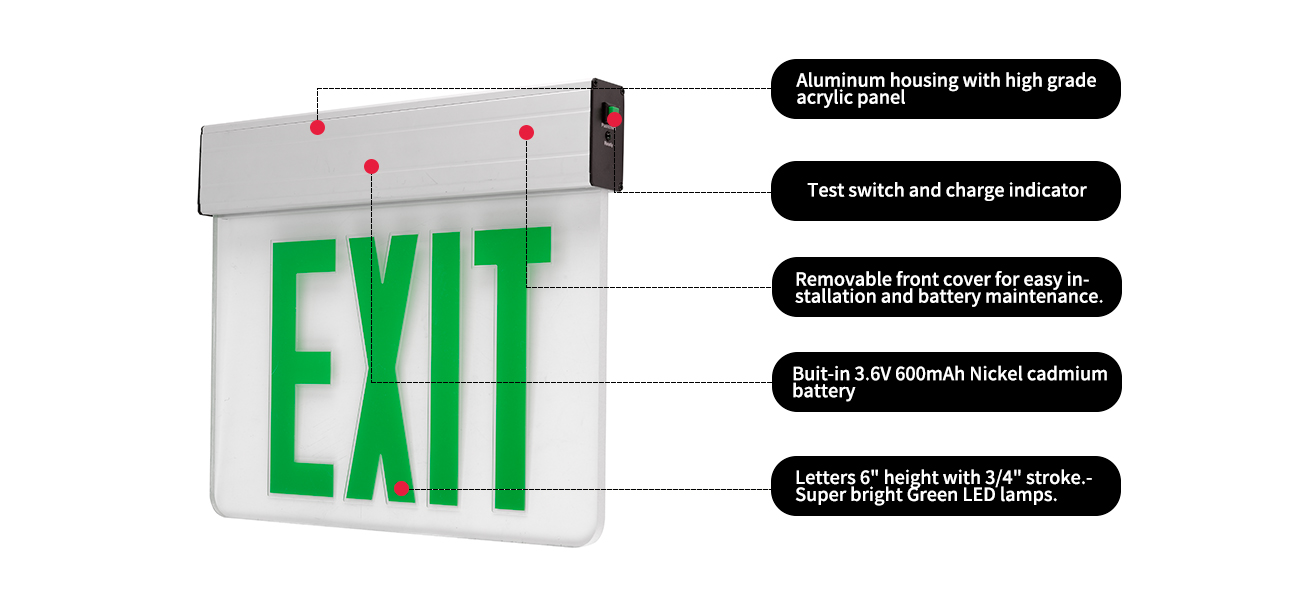 LEDコンボ緊急出口サインLEDヘッド(緑色の文字) *噴射型熱可塑性腹筋ハウジング、UL 94V-0火炎評価。 *数分で革新的で簡単なインストール *文字6 "高さ3/4"ス...