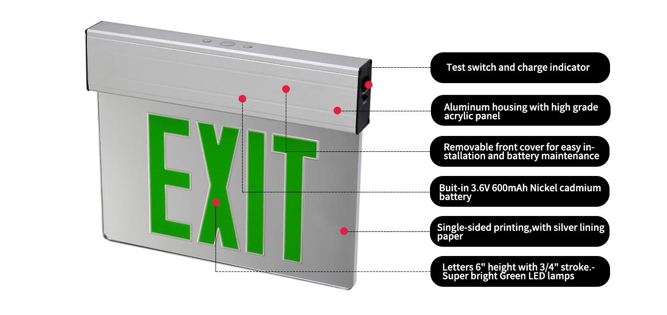 LEDコンボの緊急出口標識LEDヘッド付き(緑色の文字、リモート能力) *噴射型熱可塑性腹筋ハウジング、UL 94V-0火炎評価。 *数分で革新的で簡単なインストール *文字6...
