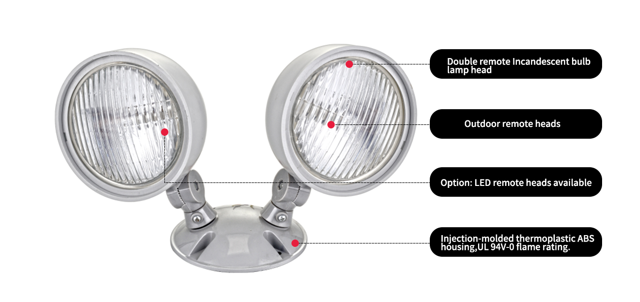 デュアルヘッドの緊急灯 *注入モーレード熱可塑性ABSハウジング、UL 94V-0火炎評価 *数分で革新的で簡単なインストール *ウォールマウントアプリケーションに適しています *ユニバーサルJ-Bo...