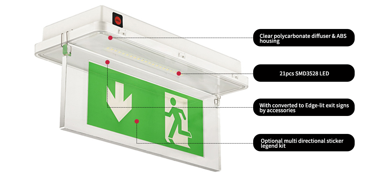 メイン仕様 | SMD 5050LED*12PCS、2.5W、3.6V 1.8AH NI-CADバッテリー、PS出口標識パネル | ||